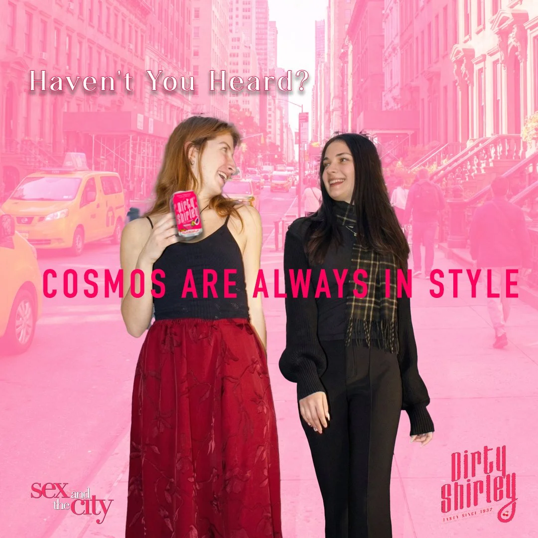 Born in 1988, The Cosmopolitan was considered a niche drink until Sex and the City premiered and put it on the map in 1998. Dirty Shirley has collaborated with Sex and The City to celebrate the show’s 30th anniversary to bring back the Cosmopolitan drink to a new generation